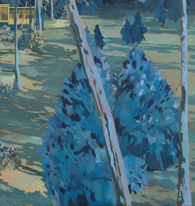 Yellowish Blue is a painting about retreat, light and colour. A carved away space to step into and disappear.